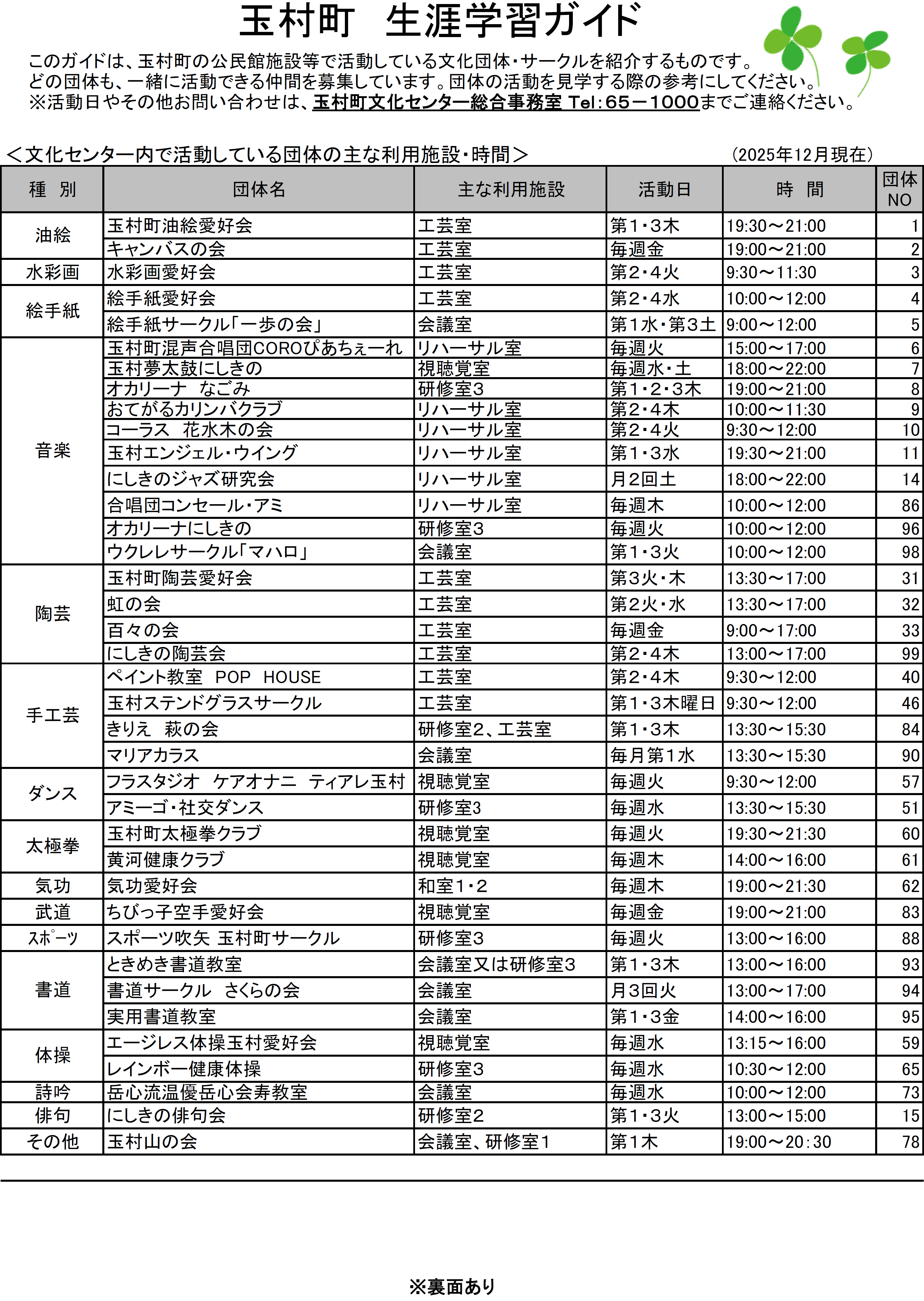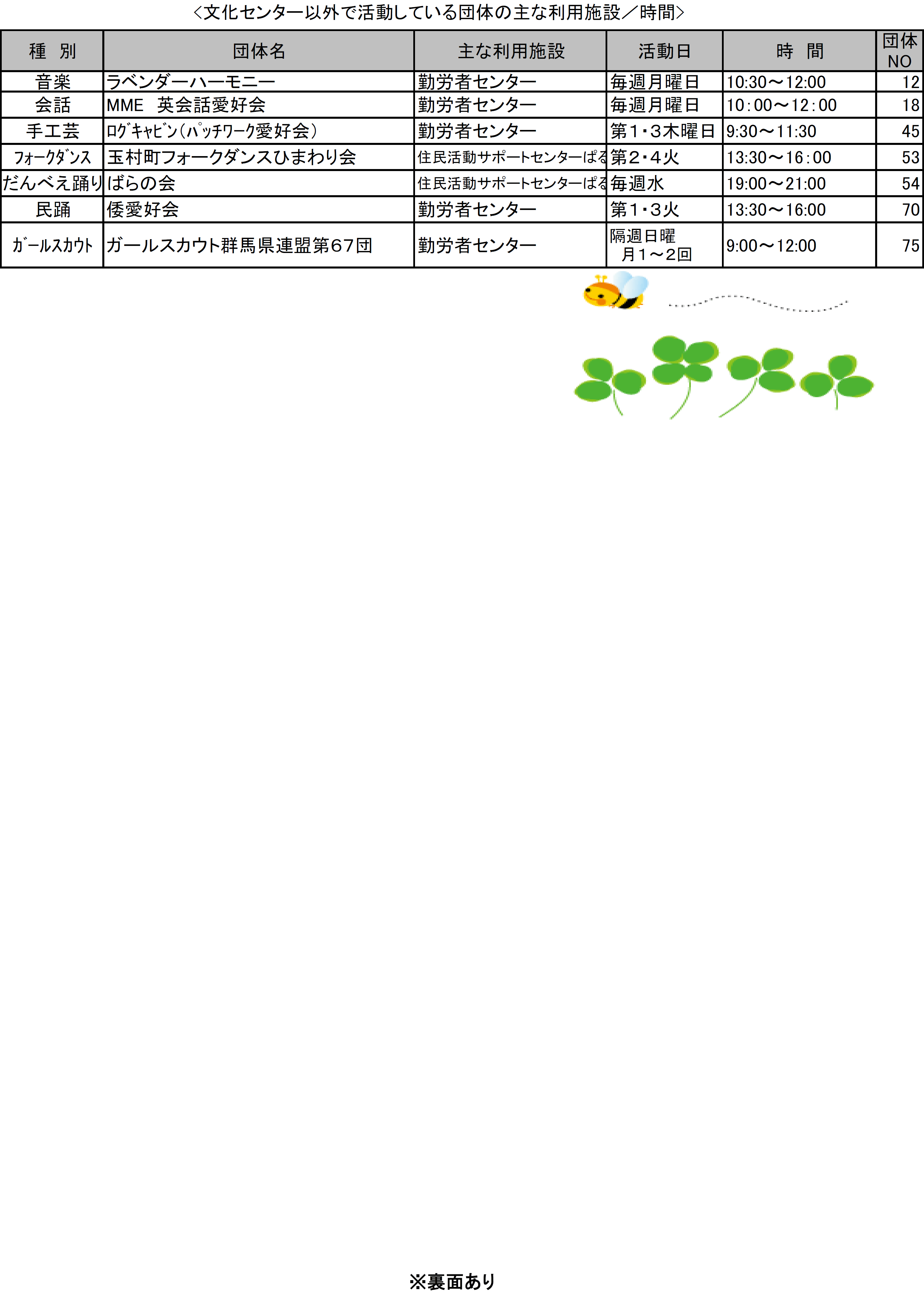 玉村町文化センターで定期的に活動する愛好会団体の一覧を掲示します。