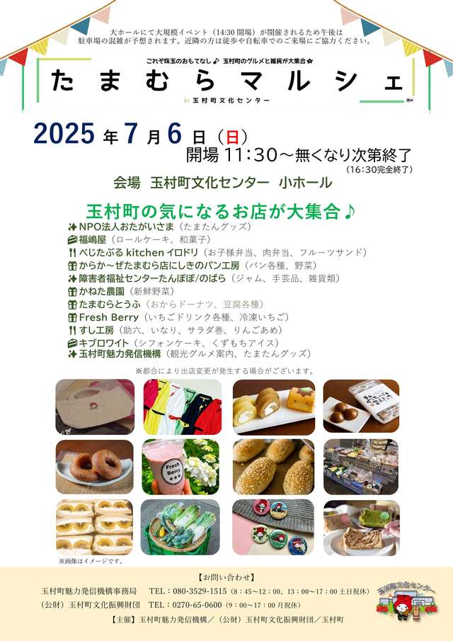玉村町魅力発信機構 電話080-3529-1515 (8:45〜12:00、13:00〜17:00 土日祝日休)