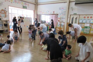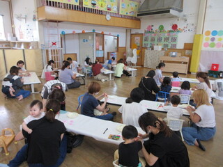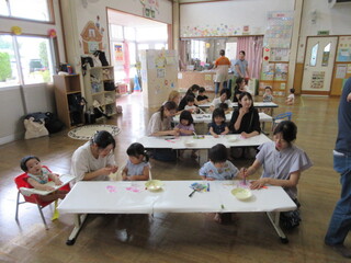 ゆめぐみは、保育園や幼稚園の気分を少しでも体験できるようなプレ保育で、毎月開催しています。朝のお始まりの流れがメインで、ピアノに合わせて歌をうたったり、名前を呼ばれて返事をしたり、出席シールを貼ったり、元気よく体操をしたりして過ごします。今月は『おじいちゃんとおばあちゃんにハガキを送ろう♡』を行いました。未就園児のお子さんなら町内外の制限なく自由に参加できますので、ぜひ西児童館に遊びにきてください。