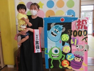 記念すべき3000人目のお友達には記念品の贈呈と記念撮影をさせていただきました。