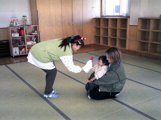 最初は元気いっぱいにあいさつから始まりました😃最初はふれあい遊びをしました。