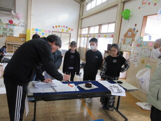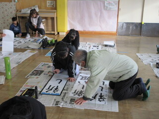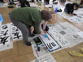 まずは先生のお手本を見ながら文字のバランスや筆の使い方を教えてもらいました。