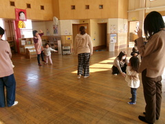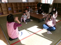 🐧「ペンギンたいそう」の絵本を見ながら〜ぺんぎんに変身。「首をのばして〜」「腕をふって〜パタパタ」「ジャンプ〜」